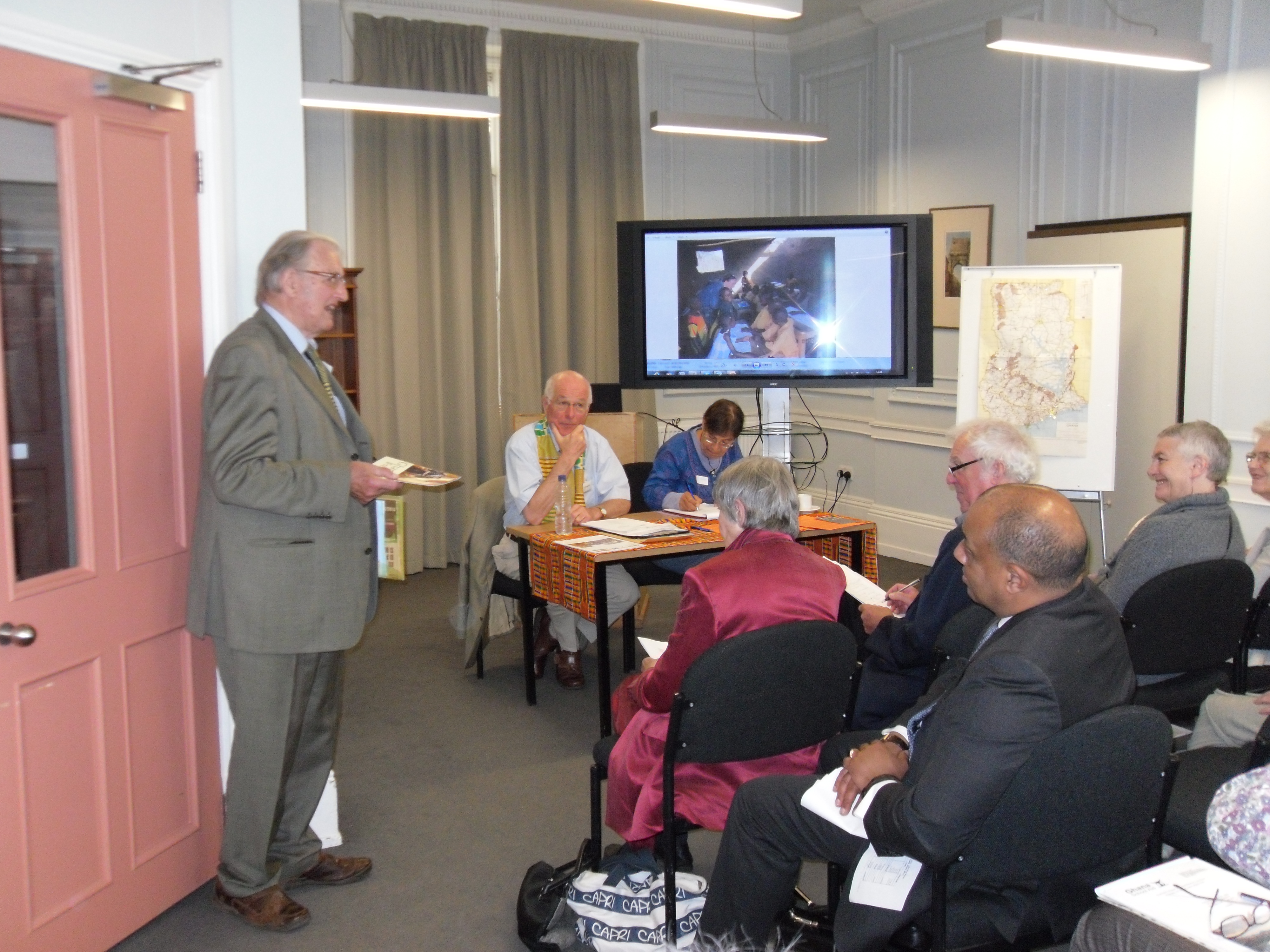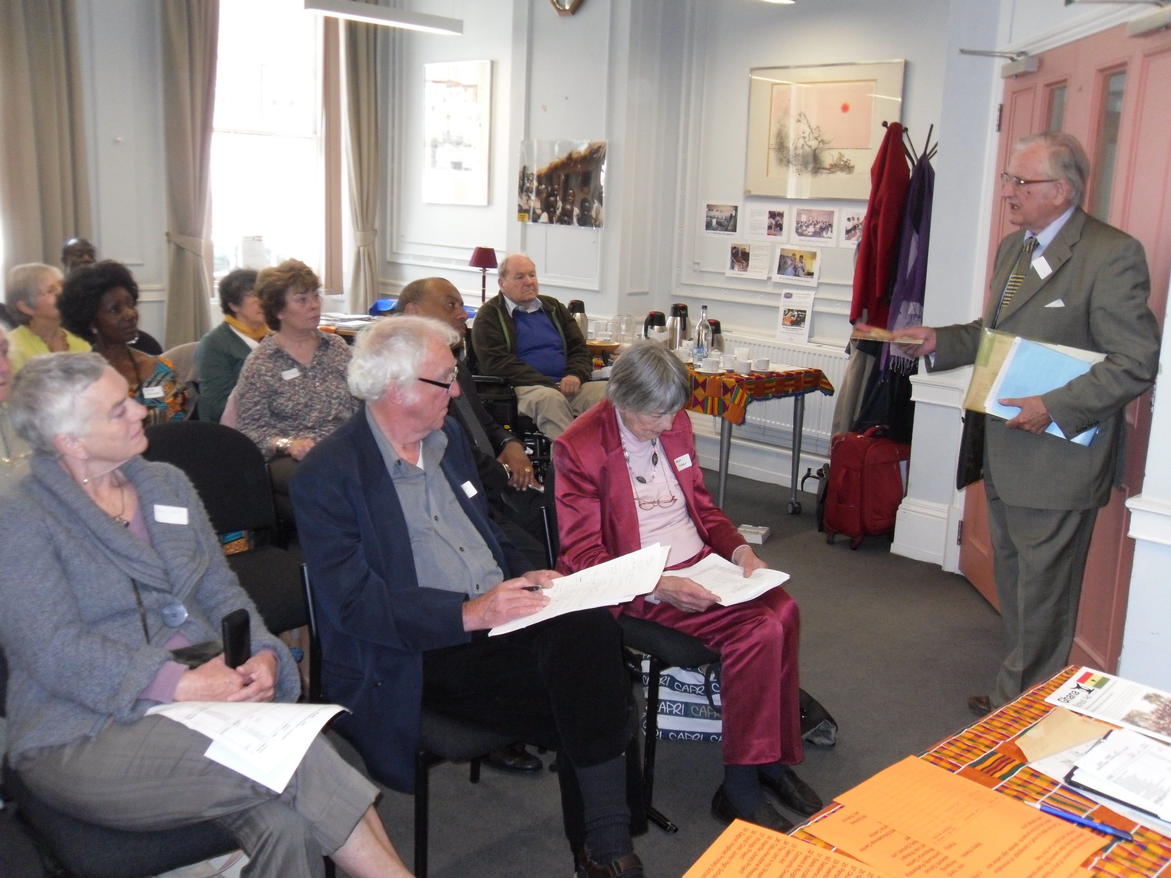 Our AGM took place on Thursday 14th June at the John Adams Hall in Endsleigh Street WC1. It went very well, as the pictures show. We were addressed over lunch by Lord Paul Boateng, on his birthday, as it happens!, who inspired us all to carry on our work. He said that the three “R”s were, of course, very important, but so too were the three “H”s – the Head for wisdom, the Hand for practical action and the Heart for constancy. We will try, Paul, we will try! The afternoon saw reports on Sandema, Wulugu, Abonse, Hia, Daffor-Awudome, and the Let’s Read Project. Jo Hallett had just returned from Upper East Region where she had helped with teacher-training and testing the efficacy of the Let’s Read programme. She had good reports, but there is still so much work to be done, both in infrastructure and in education.
